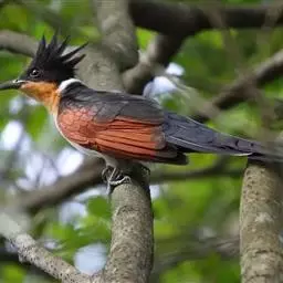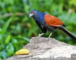 红翅凤头鹃:体长约38厘米,顶冠及凤头黑色,具显眼的直立凤头,背及尾黑色而带蓝色光泽,翅栗红色,…