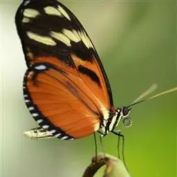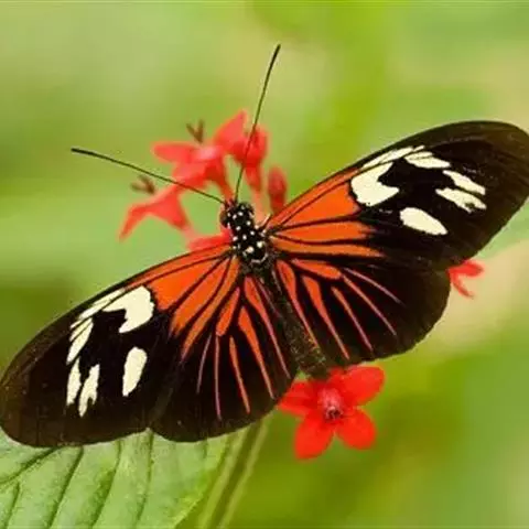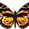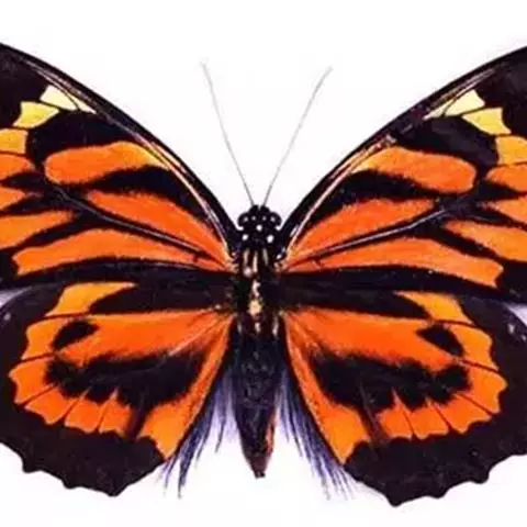黑脉金斑蝶:翅阔8.6-12.4厘米。雄蝶较雌蝶为大。成年蝶颜色鲜艳,翅膀上有显眼的橙色及黑色斑纹…