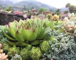 大和锦是景天科拟石莲花属的多肉植物。肉质叶排成紧密的莲座状,广卵形至散三角卵形,背面突起呈龙骨状,…