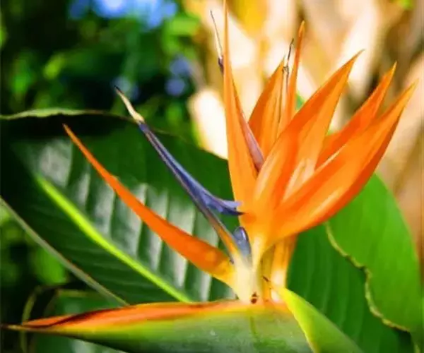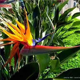 鹤望兰,别名天堂鸟,为鹤望兰科鹤望兰属的一种多年生草本植物;无木质树干;花序生于与叶柄近等长或稍短的花序梗上,佛焰苞1;花较小,萼片橙黄色,长7.5-10厘米,箭头状花瓣基部具耳状裂片,暗蓝色;花期在冬季。该物种原产非洲南部,在中国南方大城市的公园、花圃有栽培,北方则为温室栽培。性喜温暖湿润、阳光充足的气候,适宜生长的温度为25℃左右,耐干旱、较耐寒、不耐水湿,要求疏松肥沃、排水良好,以土层深厚的沙壤土为宜。因花形美丽似鹤,花开时犹如仙鹤翘首远望,花朵寿命亦长,故中文名为鹤望兰。鹤望兰素有“鲜切花之王”的美誉,是一种名贵的观赏花卉,深受广大消费者喜爱。同时,鹤望兰也宜大盆栽植,布置在公园、客厅、会议室、展厅候机室等处。鹤望兰是美国洛杉矶市的官方花卉象征。