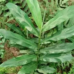 多年生草本,无茎。叶片长圆状披针形,长25-45厘米,宽约10厘米,顶端急尖,基部圆形或楔形,下部边缘波状;叶柄细长。