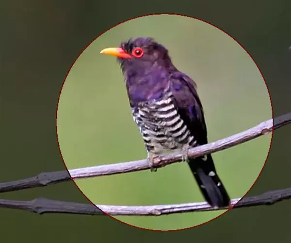 紫金鹃(学名:Chrysococcyx xanthorhynchus)是一种羽色艳丽的小形杜鹃,体长约17厘米。雄鸟头、颈、胸和上体辉紫色,腹白色,具紫蓝色横斑;雌鸟上体淡铜绿色,下体白色,具淡褐色横斑。而相似种翠金鹃雄鸟上体和胸辉绿色,腹白色而具绿色光泽;雌鸟头顶至后颈棕栗色,其余上体铜绿色。区别甚明显。