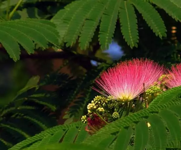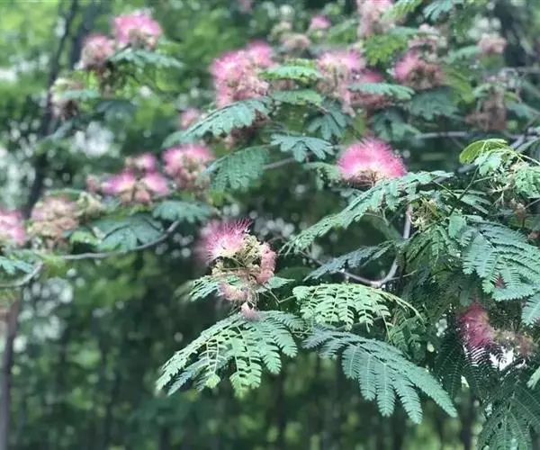 合欢花树形姿势优美,叶形雅致,树冠开阔,入夏绿荫清幽,羽状复叶昼开夜合,十分清奇,夏日粉红色绒花吐艳,十分美丽,有色有香,能形成轻柔舒畅的气氛,宜作庭荫树、行道树,种植于林缘、房前、草坪、山坡等地。是行道树、庭荫树、四旁绿化和庭园点缀的观赏佳树此外,合欢对氯化氢,二氧化抗性强,对二氧化硫有一定抗性,适于厂矿、街道绿化。