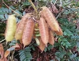 荚果带状,长9-15cm,宽1.5-2.5cm,嫩荚有柔毛,老荚无毛。花期6-7月;果期8-10月。