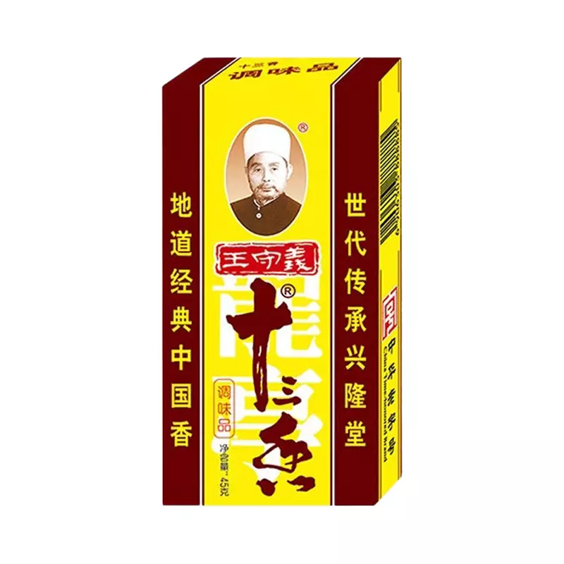 早在70年代,兴隆堂的继承人王守义从祖父的手中继承了这一秘方之后,在原配方基础上,不断挖掘中国传统调味品之理论,并加以实践、研究,根据特定的地理、人文、风俗习惯,容纳中国传统调味和医疗保健为一体的食疗观念,将配方完善改进,并取名“王守义十三香”,延续至今日。实际上“十三香”并非十三种原料构成,而是以花椒、胡椒、丁香、草果、大茴、桂皮、木香等二十多种天然中药材泡制加工而成,实可谓大自然的浓缩,纯天然的精华,健康生活的好伴侣。