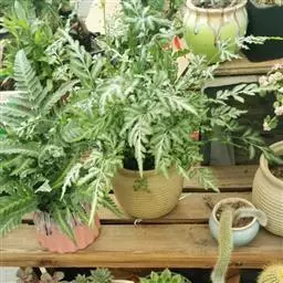 盆栽:盆栽的白羽凤尾蕨每2年需换盆1次,换盆时间在春秋季皆可进行,尽量不要伤及生长点和根。上盆时,先在盆底放2厘米厚的砂石,以利排水。撒一层碎木炭,以防腐烂。基质下层放少量骨粉或3-5个蹄片,以利根部生长。