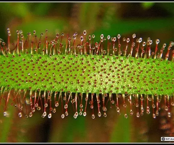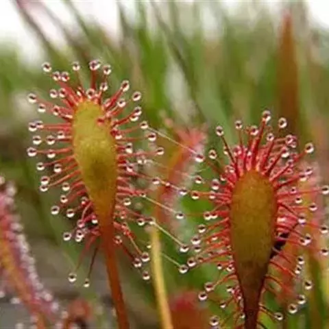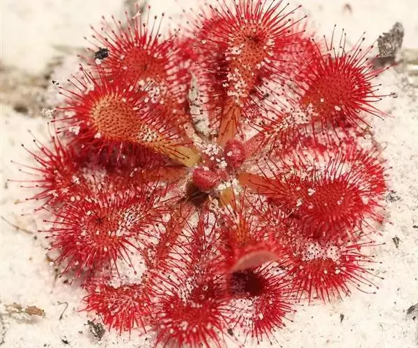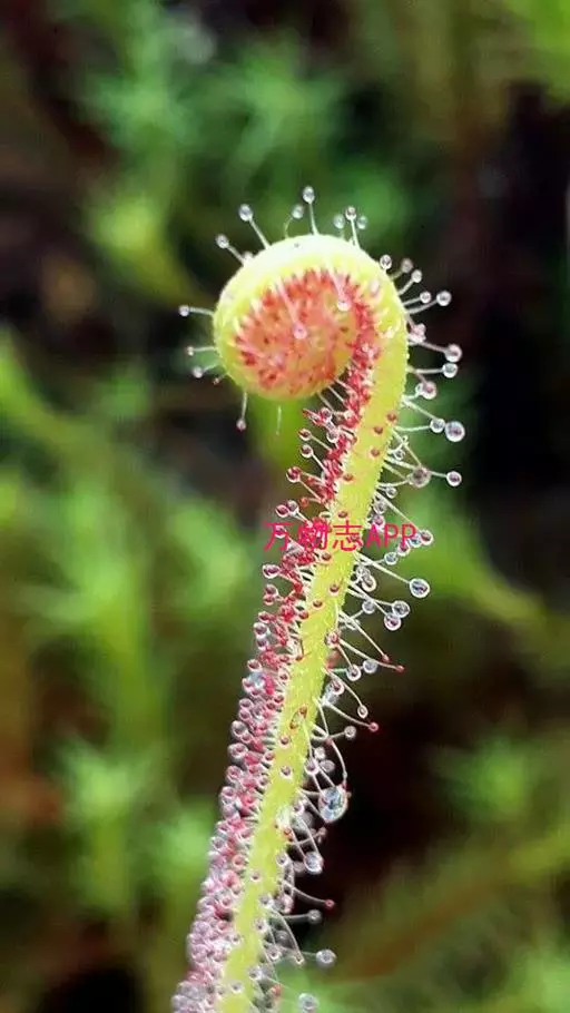 茅膏菜是食虫植物中的一个大类,它们形态各异,分布于世界各地。它的叶片密布着晶莹剔透的“露珠”,光彩夺目,深受人们喜爱。然而,对它的猎物而言,这些耀眼的光芒却是“致命”的,因为茅膏菜正是通过这些“露珠”来进行捕猎的。