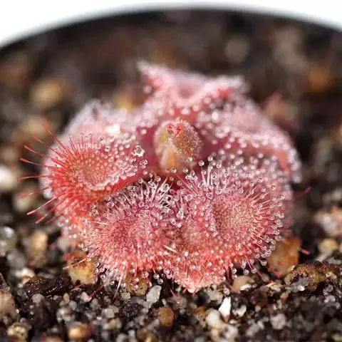 迷你茅膏菜是一类非常好种植的食虫植物,对温度要求不高,存活温度多在0-37度之间,最佳温度5-30度之间,在深秋15度以后,在植株中心的生长点会开始长出许多“冬芽”,这些冬芽会在一个月以后成熟,会像种子一样发芽成长为新的植株。