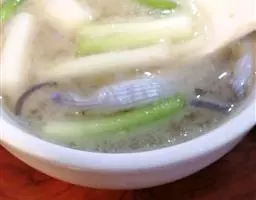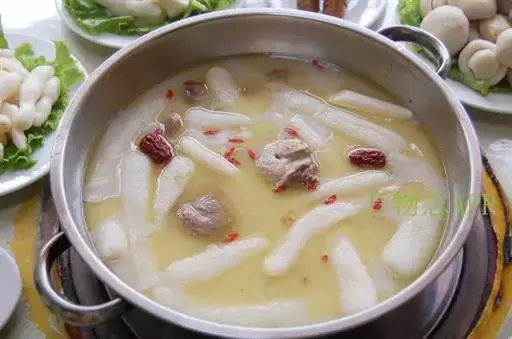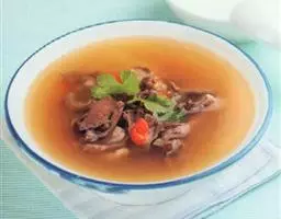 制法:将鹅肉、猪肉分别洗净,放入沸水锅中氽透,捞出,沥干水,切成丝,待用。把淮山药、北沙参、玉竹分别去杂,清水洗净,装入纱布袋中扎口,待用。将煮锅刷洗干净,置于火上,注入鸡汤,放入鹅肉丝、猪肉丝、药袋、精盐、料酒、胡椒粉、生姜片,锅加盖,共煮至肉熟烂,淋上鸡油,以味精调味即成。