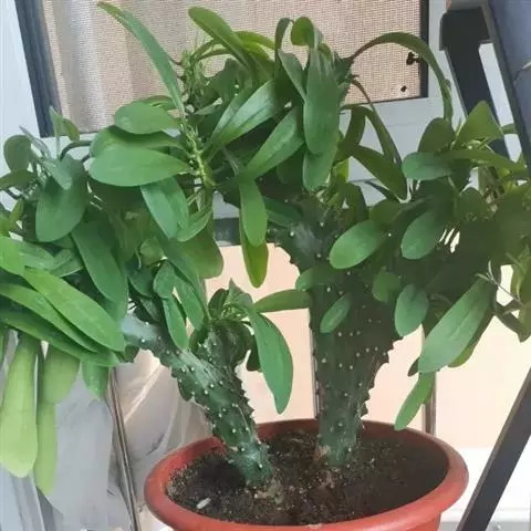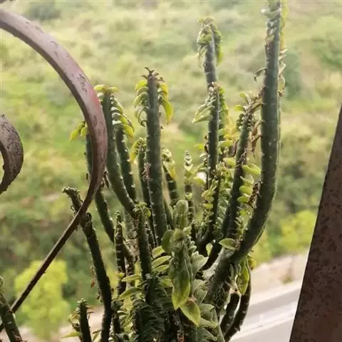 小乔木,高2~6米,直径10~25厘米,老时呈灰色或淡灰色,幼时绿色,上部平展或分枝;小枝肉质光棍…