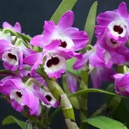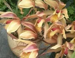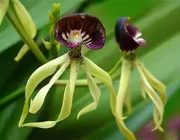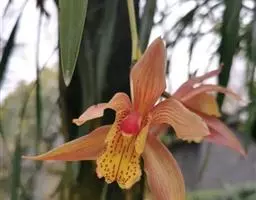 带唇兰:假鳞茎暗紫色,圆柱形,罕为卵状圆锥形,被膜质鞘,顶生1枚叶。叶狭长圆形或椭圆状披针形。…