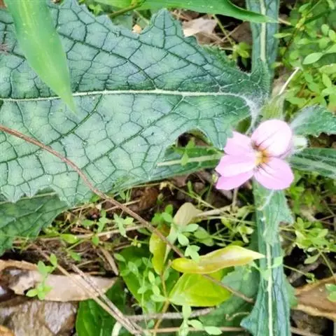 基生叶多少莲座状排列,叶片椭圆形,长6-12厘米,宽3-6厘米,纸质,两面疏被白色柔毛,边缘具不规则圆齿或粗锯齿,抑或为具圆齿的浅裂片,先端钝或突尖,基部楔形,逐渐收缩成长2-7厘米具翅的柄;茎生叶外形与基生叶相似,向上逐渐缩小。