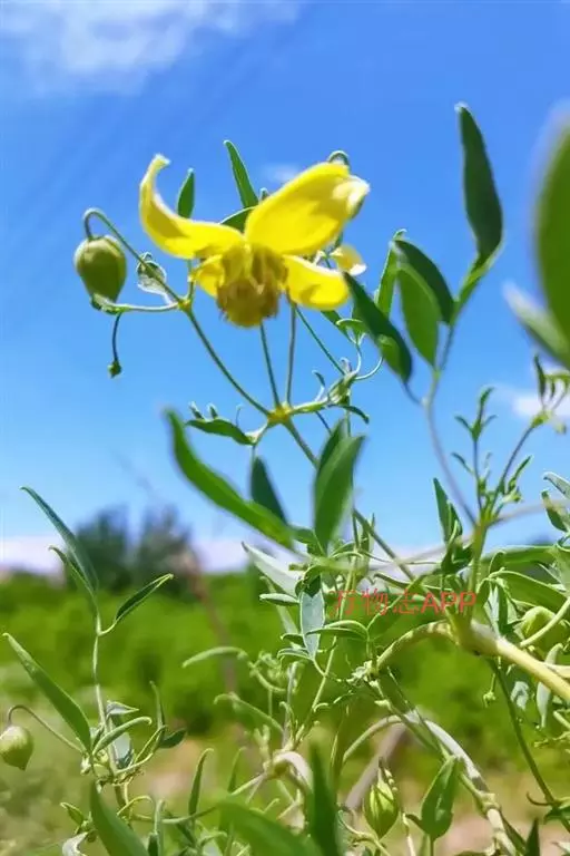 聚伞花序腋生,通常为3花,有时单花;花序梗较粗,长1.2~3.5厘米,有时极短,疏被柔毛;中间花梗无小苞片,侧生花梗下部有2片对生的小苞片,苞片叶状,较大,全缘或2~3浅裂至全裂;萼片4,黄色,狭卵形或长圆形,顶端尖,长1.2~2.2厘米,宽4~6毫米,两面无毛,偶尔内面有极稀柔毛,外面边缘有短绒毛;花丝线形,有短柔毛,花药无毛。