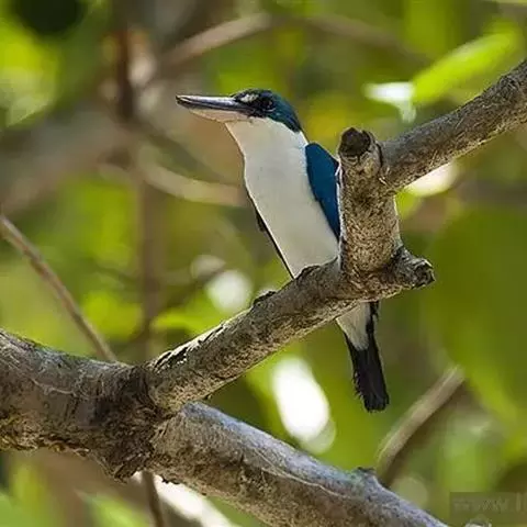 白领翡翠:有50个亚种。体长18厘米,体重35-40克。是一种蓝白色翡翠鸟。…