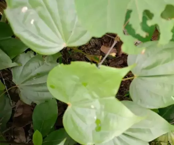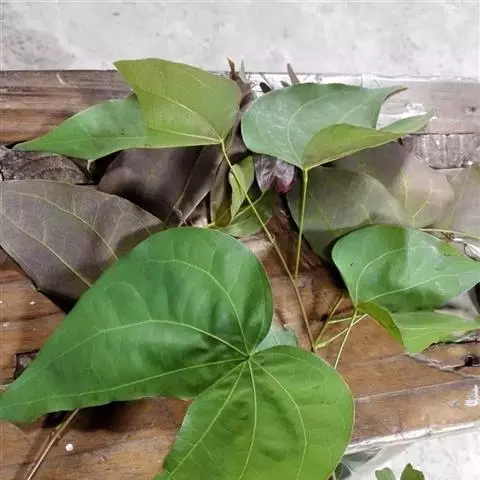 藤本,有卷须;嫩枝和花序薄被紧贴的小柔毛。叶纸质,卵形或心形,长3-10厘米,宽2.5-6.5(-9)厘米,先端锐渐尖、圆钝、微凹或2裂,裂片长度不一,基部截形、微凹或心形,上面无毛,下面被紧贴的短柔毛,渐变无毛或近无毛,干时粉白褐色;基出脉5-7条;叶柄长1-2.5厘米,纤细,略被毛。