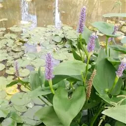 梭鱼草是雨久花科,梭鱼草属多年生挺水或湿生草本植物,株高可达150厘米,地茎叶丛生,圆筒形叶柄呈绿色,…
