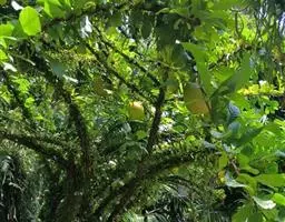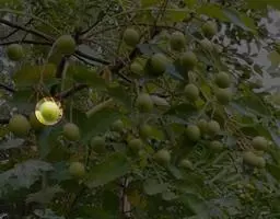 果序长约10-15厘米,俯垂,通常具5-7果实,序轴被短柔毛。果实球状、卵状或椭圆状,顶端尖,密被腺质短柔毛,长3.5-7.5厘米,径3-5厘米;果核长2.5-5厘米,表面具8条纵棱,其中两条较显著,各棱间具不规则皱曲及凹穴,顶端具尖头;内果皮壁内具多数不规则空隙,隔膜内亦具2空隙。花期5月,果期8-9月。