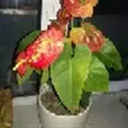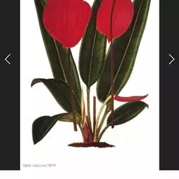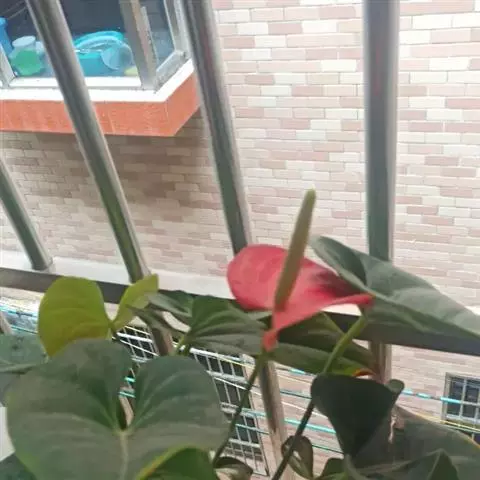 花烛(Anthurium andraeanum Linden):是单子叶植物纲天南星科花烛属多年生常绿草本植物。茎节短;叶自基部生出,绿色,革质,全缘,长圆状心形或卵心形。叶柄细长,佛焰苞平出,革质并有蜡质光泽,橙红色或猩红色;肉穗花序黄色,可常年开花不断。