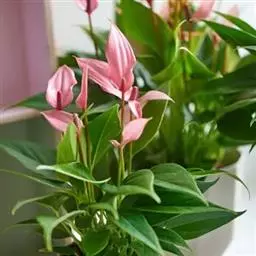 盆栽花烛宜选用排水良好的基质,规模化生产用泥炭、珍珠岩、沙的复合基质,其比例为,1立方米泥炭:4至5公斤珍珠岩:0.15立方米沙。其pH值保持5.5-6.5之间。最适生长温度为20-30℃,最高温度不宜超过35℃,最低温度为14℃,低于10℃随时有冻害的可能。最适空气相对湿度为70%-80%,不宜低于50%,因为保持栽培环境中较高的空气湿度,是花烛栽培成功的关键。因此,一年四季应多次进行叶面喷水。