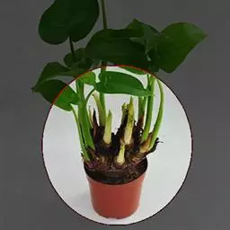 对直立性有茎的花烛品种可采用扦插繁殖,剪取带1-2个茎节有3-4片叶的作插穗,插入水苔中,待萌发新根后定植盆内。