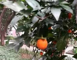 柿 落叶大乔木,通常高达10-14米以上,胸高直径达65厘米,高龄老树有高达27米的;树皮深灰色至灰黑色,或者黄灰褐色至褐色,沟纹较密,裂成长方块状;树冠球形或长圆球形,老树冠直径达10-13米,有达18米的。