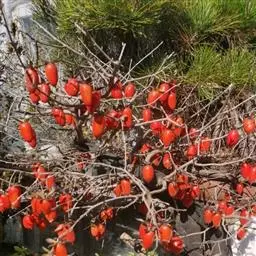 大秋 原产日本,国家资源圃于1997年从日本直接引进。该品种果实特大,平均重230克,最大果重368克,高馒头形,橙红色。果肉黄色均一,无褐斑。肉质酥脆,口感甜爽,汁多味浓,糖度达24%,品质极上。是日本近年育成的少有的大果、优质完全甜柿品种。有极高的商品性。在陕西省10月上中旬成熟。但必须强调,由于该品种属于富有系品种,引入中国后,与软枣亲和力极差,高接时应接在大柿树上,而不要接在软枣上;育苗时也必须接于本砧或以柿品种为中间砧的苗木上。另外,如成熟较早的完全甜柿品种伊豆、新秋;中熟品种前川次郎、兴津20;晚熟品种晚御所、骏河以及中国原产的罗田甜柿、秋焰、甜宝盖等甜柿品种在一定小气候下也可栽培生产。