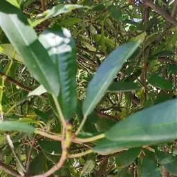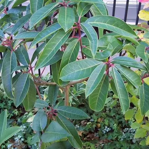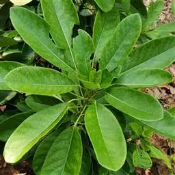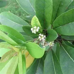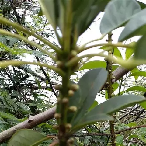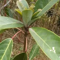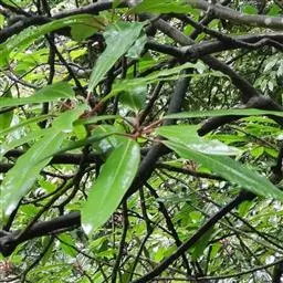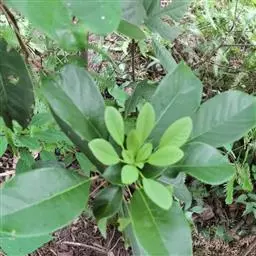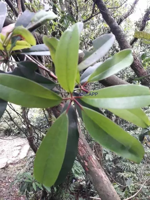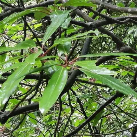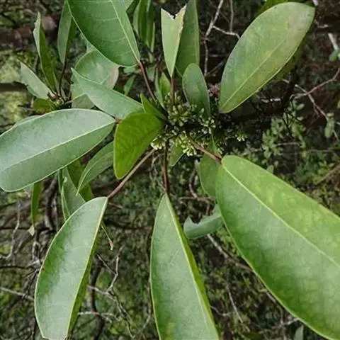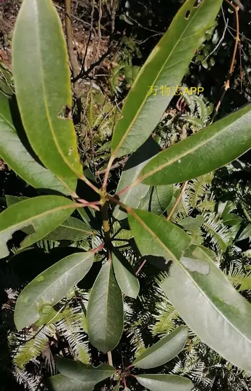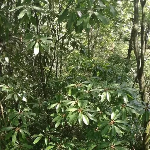 交让木(学名:Daphniphyllum macropodum Miq.)是虎皮楠科,虎皮楠属灌木或小乔木,高可达10米;小枝粗壮,暗褐色,叶革质,叶片长圆形至倒披针形,叶面具光泽,叶背淡绿色,无乳突体,侧脉纤细而密,叶柄紫红色,粗壮,雄花、雌花花萼不育;花丝短,子房卵形,花柱极短,柱头外弯,扩展。果椭圆形,暗褐色,果梗纤细。3-5月开花,8-10月结果。