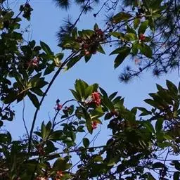 观赏:交让木树冠整齐,绿叶光润,偶有红色叶柄闪露,亦能展现其特有的色彩美。在园林中可孤植或丛植,更宜于与其他观花果树木配植,如与南天竹同栽,则高低错落,搭配自然,临冬绿叶红果相互辉映,自成佳景。