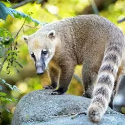 南浣熊,喜树上攀爬并以尾巴保持平衡,在地面时尾常竖立,尾端弯曲。多数个体在白天出没,…