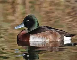 白腹麻鸭身长50 -60 cm,雄鸭体重930g,雌鸭体重840g。 成鸭有栗红色的上体和双翅,间深绿色金属光泽。头、颈和下体雪白色,淡青紫色鸭喙,虹膜黑色,有淡淡的黑眼圈,腿黄色。