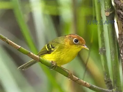 全长75-100毫米。前额、头顶至后枕棕栗色,侧冠纹前部较狭呈灰黑色,向后逐渐变粗呈黑色,枕侧杂白色斑纹;眼先灰白,眼圈白色;颊和耳羽灰,杂灰黑色细纹;上背和肩灰色,下背橄榄绿,腰和尾上覆羽鲜黄;翅上覆羽、飞羽和尾羽黑褐,外缘橄榄绿色,大中覆羽具淡黄色端斑,形成两道翼斑。颏、喉和胸灰色,中央较淡呈灰白色,延伸至上腹部中央,上腹部两侧和下腹部、胁部、翅下覆羽、腋羽及尾下覆羽亮黄绿色;最外侧两对尾羽内翈纯白色。