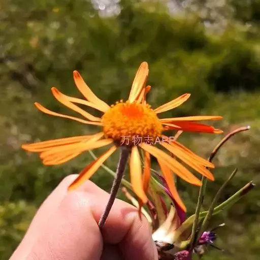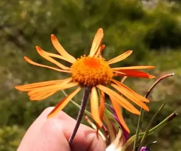 多年生草本,高7-25厘米。茎单生或少数茎成簇生,不分枝,有弯曲的长单毛,上部及接头状花序处的毛稠密。基生叶椭圆形或长椭圆形,长1.5-7厘米,宽1-2.5厘米,二回羽状分裂。一二回全部全裂。一回侧裂片5-15对。二回为掌状或掌式羽状分裂。末回侧裂片线形,宽0.5-0.8毫米。叶柄长1-3厘米。茎叶少数,直立贴茎,与基生叶同形并等样分裂,无柄。全部叶绿色,有稀疏的长单毛或几无毛。头状花序单生茎顶。总苞直径1-2厘米。总苞片约4层。外层线状披针形,长约6毫米;中.内层长披针形至宽线形,长约7-8毫米。外层基部和中外层中脉有稀疏的长单毛,或全部苞片灰色,被稠密弯曲的长单毛。全部苞片边缘黑褐色或褐色膜质。舌状花桔黄色或微带桔红色。舌片线形或宽线形,长达2厘米,顶端3齿裂。瘦果长约3毫米,5-8条椭圆形突起的纵肋。冠状冠毛长0.1毫米,分裂至基部。花果期7-9月。