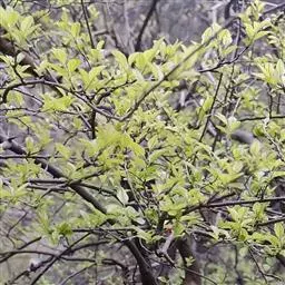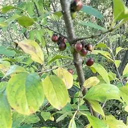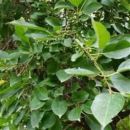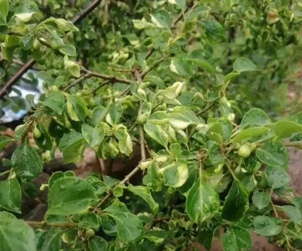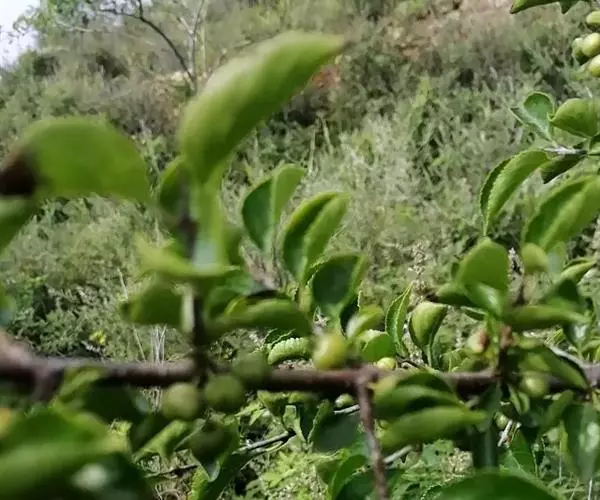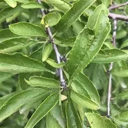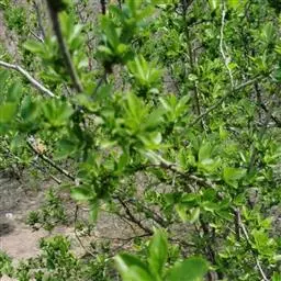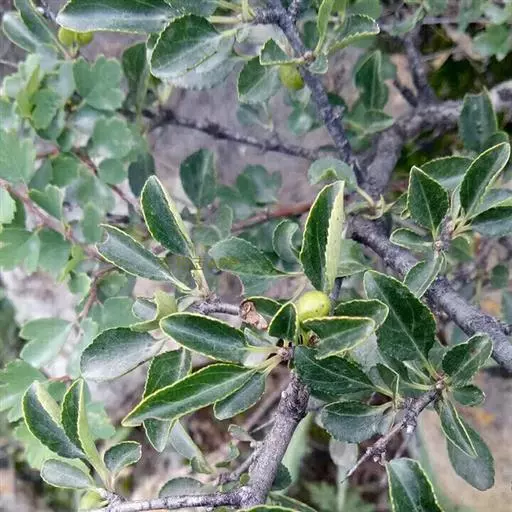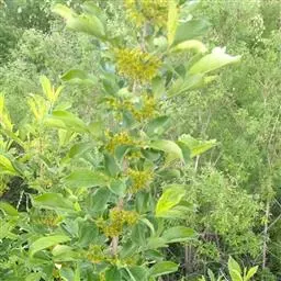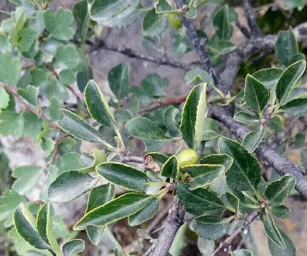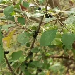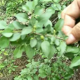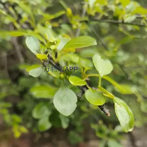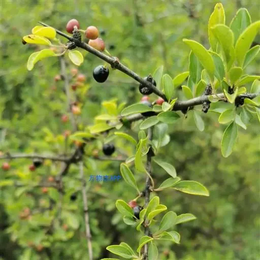 小叶鼠李,又名麻绿、大绿、驴子刺、叫驴子刺。灌木,高1.5-2m;小枝对生或近对生,紫褐色,初时被短柔毛,后变无毛,平滑,稍有光泽,枝端及分叉处有针刺;芽卵形,长达2mm,鳞片数个,黄褐色。叶纸质,对生或近对生,稀兼互生,或在短枝上簇生,菱状倒卵形或菱状椭圆形,稀倒卵状圆形或近圆形,长1.2-4cm,宽0.8-2(3)cm,顶端钝尖或近圆形,稀突尖,基部楔形或近圆形,边缘具圆齿状细锯齿,上面深绿色,无毛或被疏短柔毛,下面浅绿色,干时灰白色,无毛或脉腋窝孔内有疏微毛,侧脉每边2-4条,两面凸起,网脉不明显;叶柄长4-15mm,上面沟内有细柔毛;托叶钻状,有微毛。花单性,雌雄异株,黄绿色,4基数,有花瓣,通常数个簇生于短枝上;花梗长4-6mm,无毛;雌花花柱2半裂。核果倒卵状球形,直径4-5mm,成熟时黑色,具2分核,基部有宿存的萼筒;种子矩圆状倒卵圆形,褐色,背侧有长为种子4/5的纵沟。花期4-5月,果期6-9月。