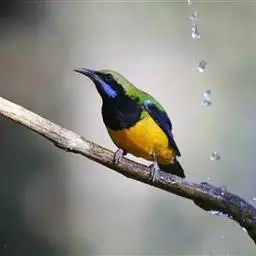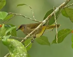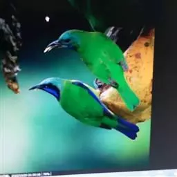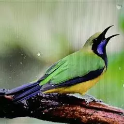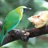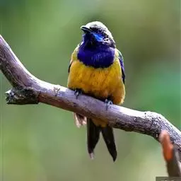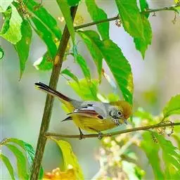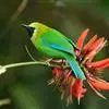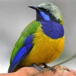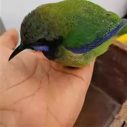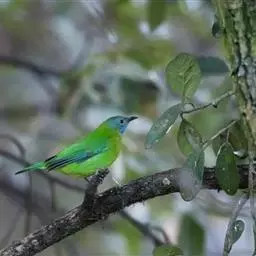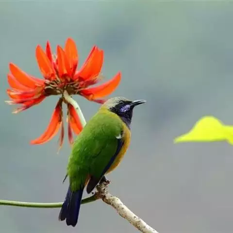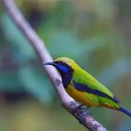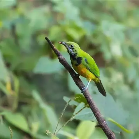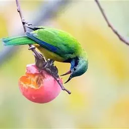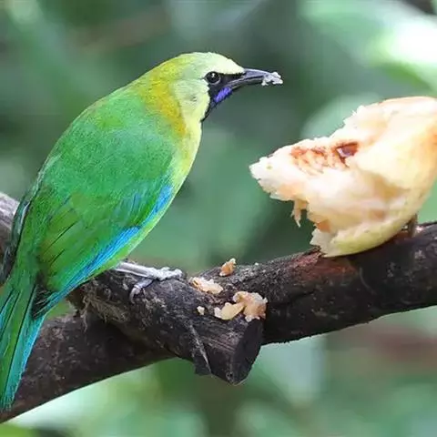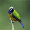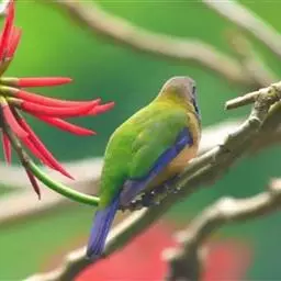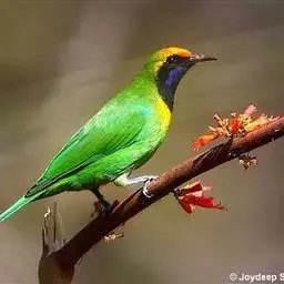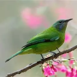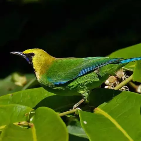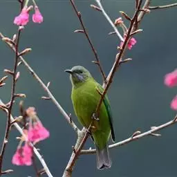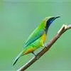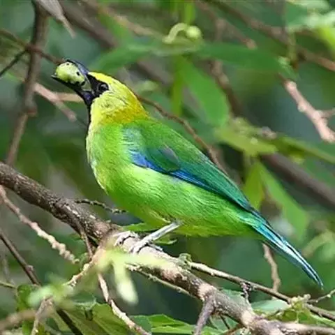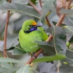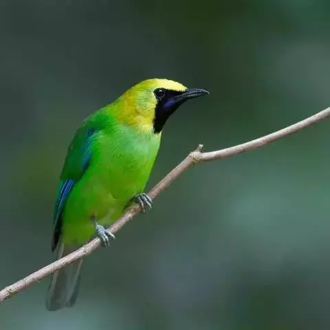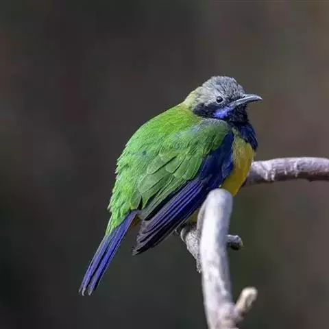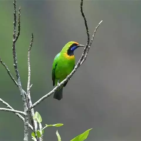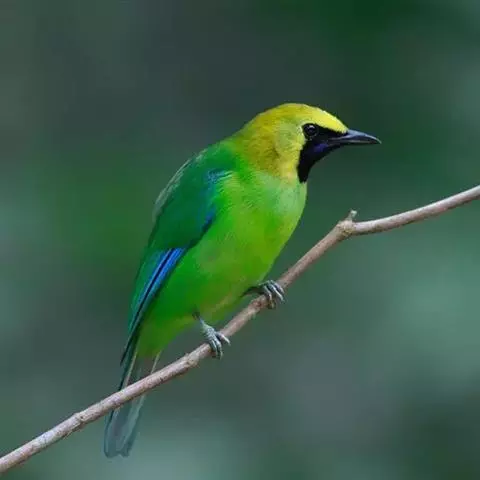 蓝翅叶鹎:小型鸟类,体长15-18厘米。雄鸟通体草绿色,尾蓝绿色,肩和翅亮蓝 色,胸缀有黄色,…