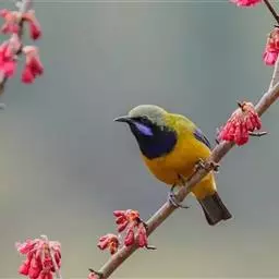 金额叶鹎是和平鸟科、叶鹎属的鸟类。体长16-20厘米。额和头顶前部金桔色,整个上体包括两翅表面草绿色。…