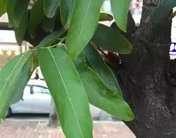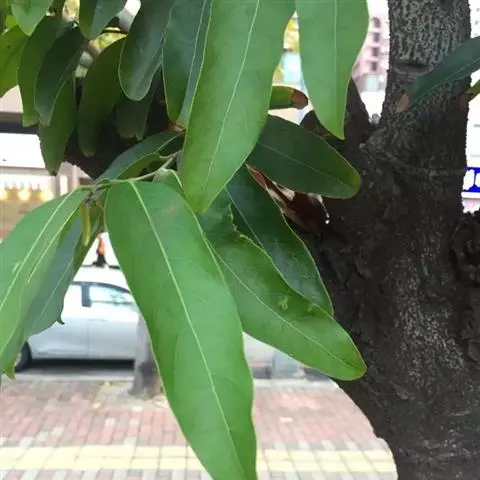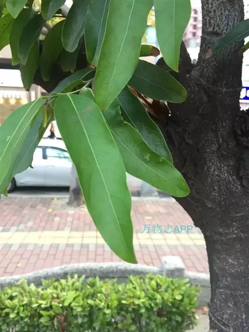 常绿大乔木,高7-20(-30)米;树干通直,树皮灰褐色;小枝粗壮,节部稍膨大。叶薄革质,卵状披针形或卵状长圆形,长10-30厘米,宽3-8厘米,先端长渐尖,基部通常圆形,稀宽楔形,偏斜,边全缘,无毛,上面绿色,下面淡绿色,干后赤褐色,侧脉8-10对,网脉细密,明显;叶柄长1.2-1.5厘米,无毛。