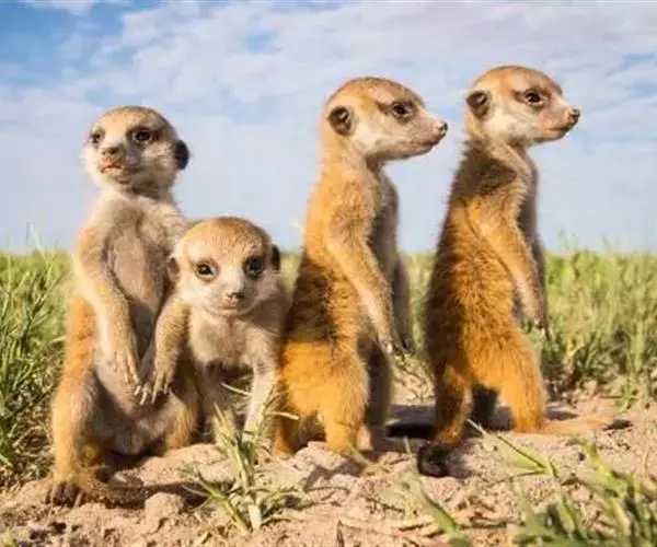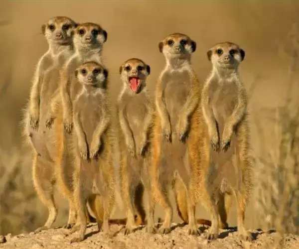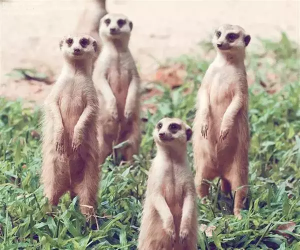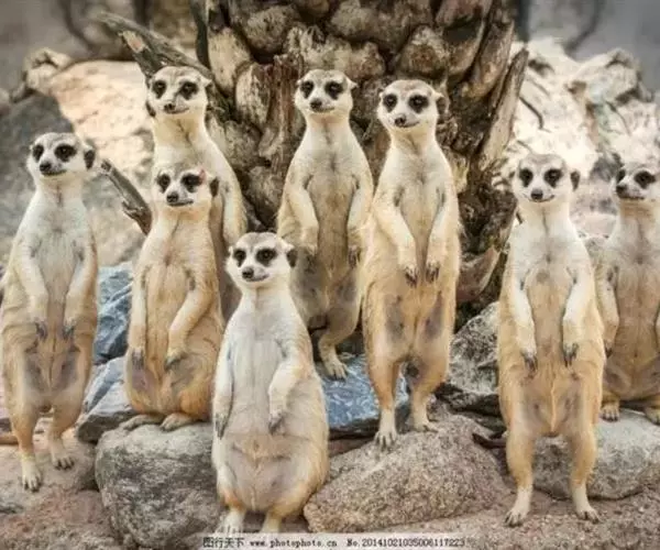 2016年9月14日,猫鼬家族来拍全家福了。5个小家伙站成一队,乖乖的叠起罗汉瞪大眼睛,有一个小家伙甚至托着腮帮,似乎正等着拍照。只有一个二货背对着镜头,看上去还没搞明白怎么回事。来自瑞士巴塞尔的摄影师Markus Walti拍到了这搞笑的一幕。