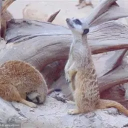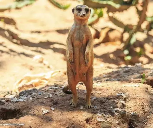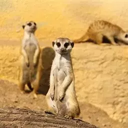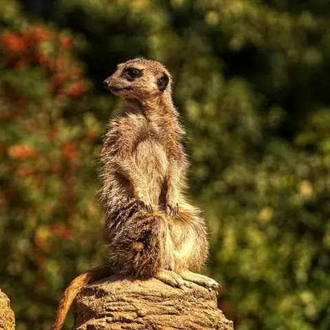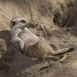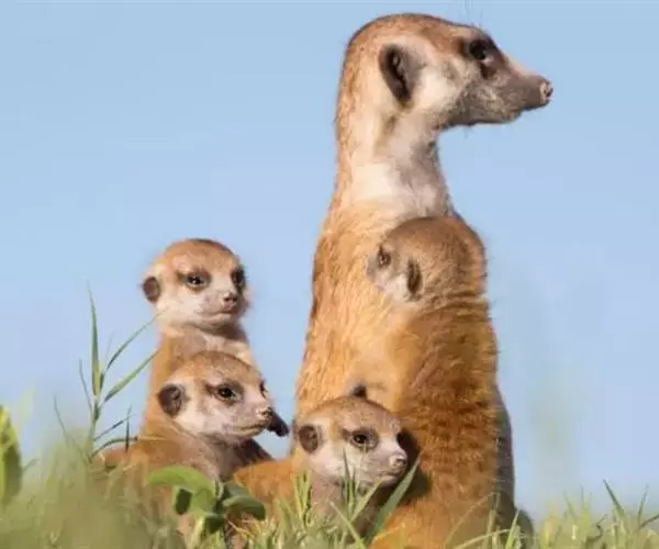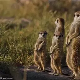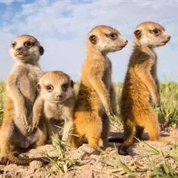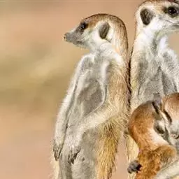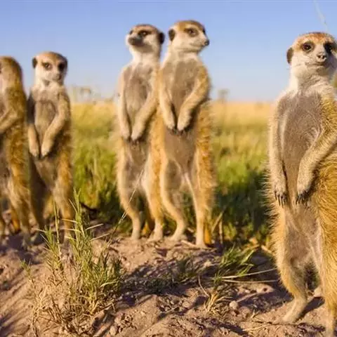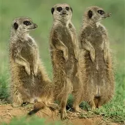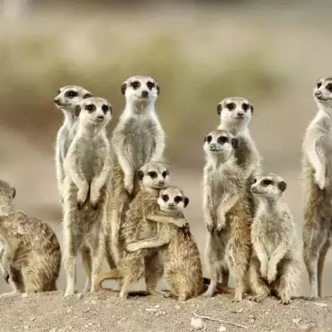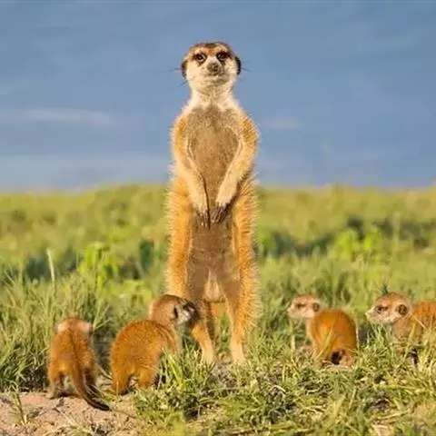 狐獴(学名:Suricata suricatta),头尾长42-60厘米,是一种小型的哺乳动物。体形粗笨。四肢短,后足仅具4趾,趾间有蹼;尾长而圆,约为体长的2/3,上被小鳞片及稀疏的毛。背部毛色黑褐,杂以黄色毛尖,绒毛为深咖啡色;尾两色,上面棕黑色,尾基部和下部为淡黄色。