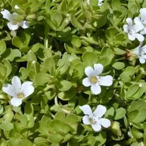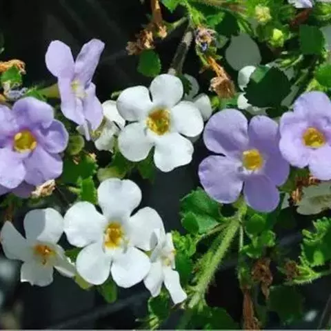 百可花(Bacopa)是一种攀缘性花卉,它基部分枝性好,花朵娇小可爱,花色从白色到紫色,叶片紧密,喜光照,在吊篮、花盆和花境中表现都非常良好,为优良的秋季销售花卉。