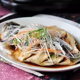 清蒸翡翠石斑鱼 石斑鱼中以青石斑鱼蛋白含量最高,比大黄鱼的蛋白含量都高,其次是棕点石斑鱼,珍珠龙胆石斑鱼和点带石斑鱼,七带石斑鱼和赤点石斑鱼的蛋白含量与中国花鲈、大菱鲆相近,而鞍带石斑鱼和美洲黑石斑鱼与真鲷的蛋白含量接近,相 对 比 较 低,约 为66%(干重计),但脂肪含量却比大菱鲆高10多倍。除鞍带和美洲黑石斑鱼脂肪含量明显较高外,其他几种石斑鱼的脂肪含量与真鲷相近,略高于大黄鱼和大菱鲆。石斑鱼中必需氨基酸占氨基酸总量均超过37%,跟FAO /WTO所建议的理想蛋白模式比 较,石斑鱼的必需氨基酸指数(EAAI)均较高。通常产品的EAAI越高营养价值也越高,点带石斑鱼EAAI为103,棕点石斑鱼的EAAI为90.19,鞍带石斑鱼EAAI为95.87,说明石斑鱼是质量较好的蛋白质源。另外,石斑鱼的鲜味氨基酸(谷氨酸Glu、天冬氨酸Asp、甘氨酸Gly、丙 氨 酸Ala)含量也十分丰富,这说明了石斑鱼味道比较鲜美。石斑鱼脂肪含量比其他海水鱼类略高,但脂质均为优质脂肪酸,其中多不饱和脂肪酸含量丰富,二十碳五烯酸(EPA)和二十二碳六烯酸(DHA)含量占多不饱和脂肪酸含量58% ~88%,其对人体的健康有重要的作用。所以石斑鱼是味道鲜美、高蛋白、高优质不饱和脂肪酸、氨基酸组成均衡的一种营养价值极高的优质海水鱼类 。