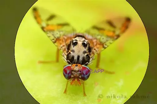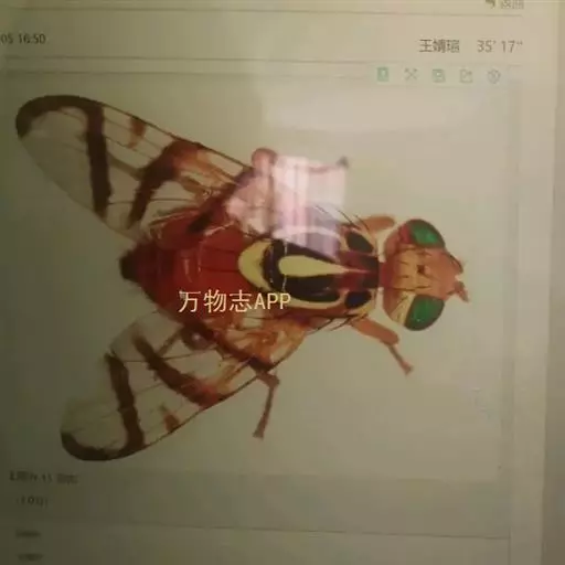 地中海实蝇,一种毁灭性的水果害虫,是实蝇科昆虫的一种。原产非洲热带地区,后分布到世界许多地区 现已分布在80多个国家和地区,此种害虫有250多种寄主,主要危害柑桔、苹果、梨等水果和茄科蔬菜。为重要检疫性害虫。成虫体长 4~5 毫米,翅长4.5 毫米。体和翅上有特殊颜色。额黄色,头顶黄色略具光泽。此虫极具有破坏水果的危害性。
