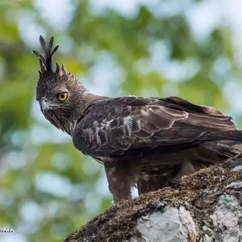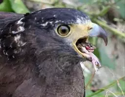 苍鹰是中小型猛禽。体长可达60厘米,翼展约1.3米。头顶、枕和头侧黑褐色,枕部有白羽尖,…