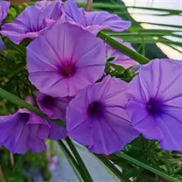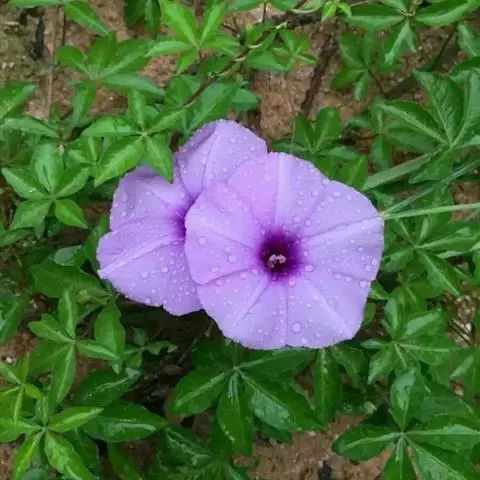 原产非洲的布鲁牵牛(Ipomoea holubii)属于旋花科番薯属(在某些分类系统中与牵牛花同属)。它肥大的球形块根和细裂的叶片常使人忘记了它的真实身份。只有在它绽放出喇叭形的花朵时,才容易让人认出原来它是牵牛花的近亲。