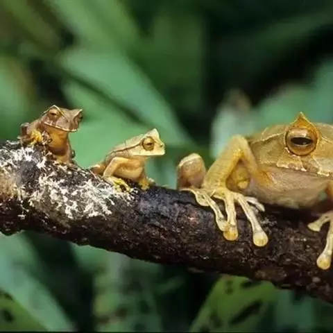 树蛙是树蛙科两栖动物的统称。树蛙体中等或大,一般雄蛙吻端斜尖,雌蛙吻端高钝;舌后端缺刻深,梨骨齿发达,…
