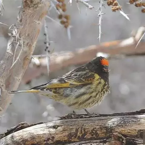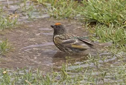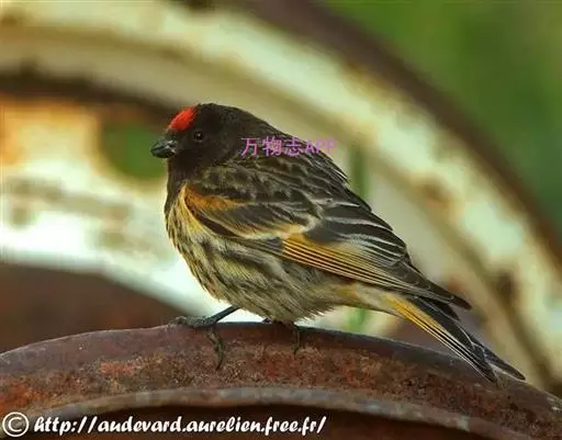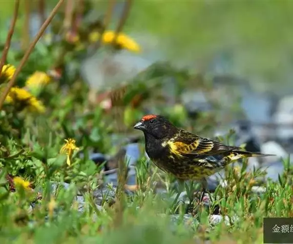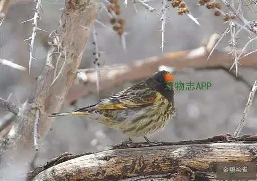 金额丝雀(学名:Serinus pusillus):为雀科丝雀属的鸟类。体重10-14克,体长109-131毫米。是一种体型较小的褐色斑驳的雀鸟。头近黑,额至顶冠有鲜红色块斑。雄雌同色,体羽在繁殖期更为亮丽。幼鸟似成鸟但头色较淡,额及脸颊暗棕色,顶冠及颈背具深色纵纹。叉形尾,嘴短而呈圆锥形。虹膜深褐色,嘴灰色,腿深褐色。