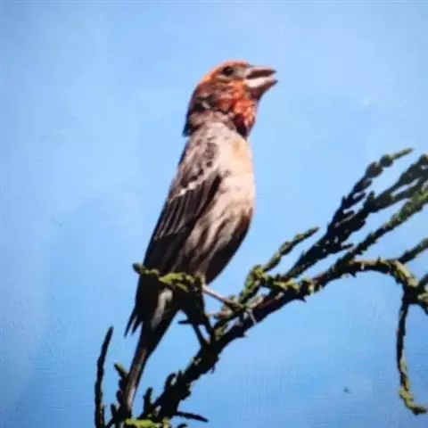 血雀雀科朱雀属鸟类,体重36-49克;体长155-182毫米。雄鸟除眼先、翼与尾为黑色外,…