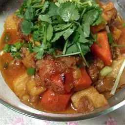 5、大火焖10钟后収汁即可出锅,放上准备好的香菜即可。