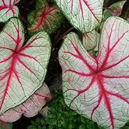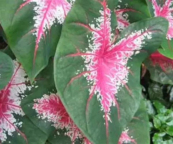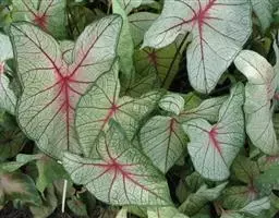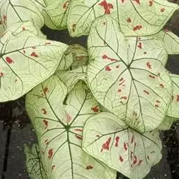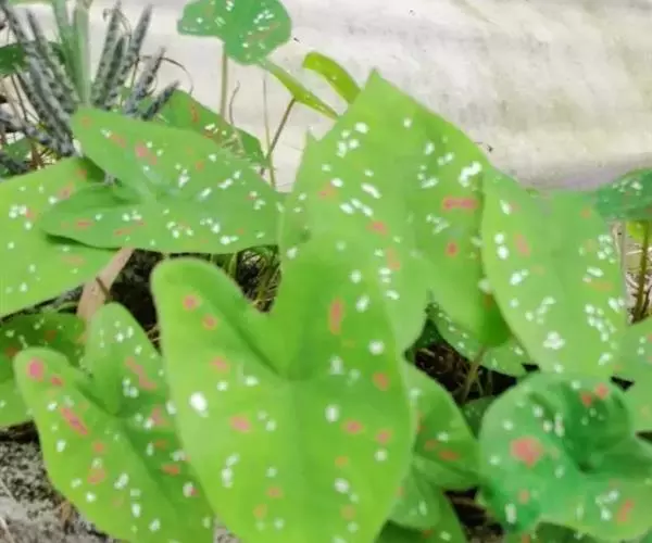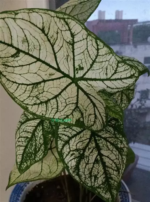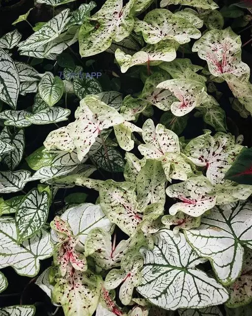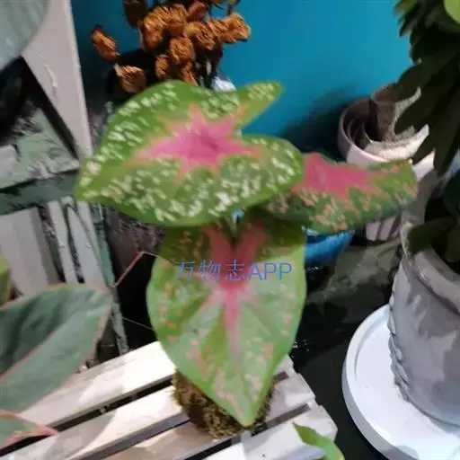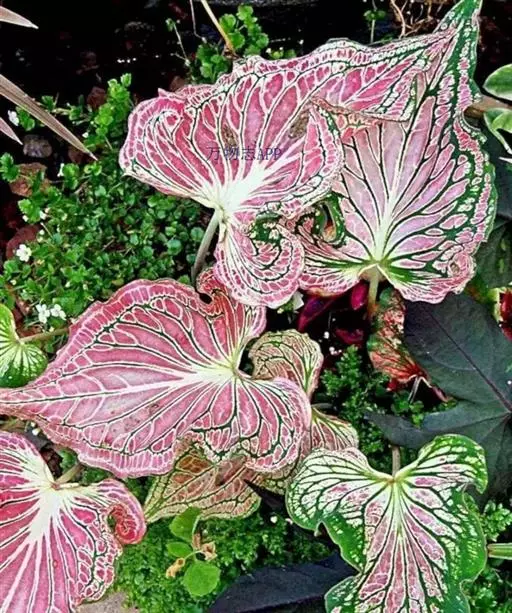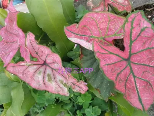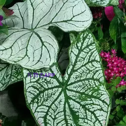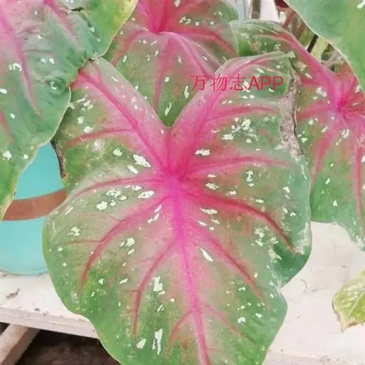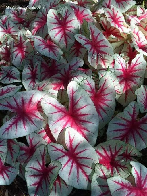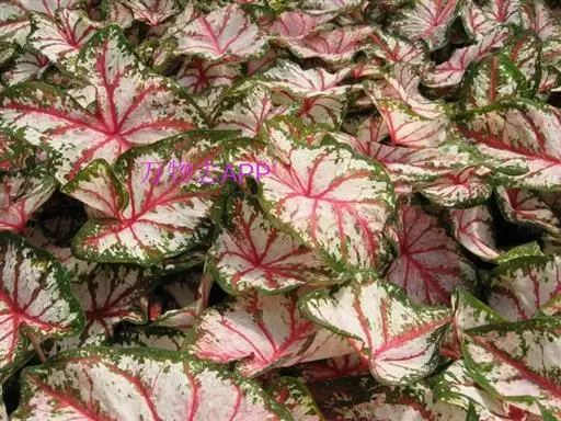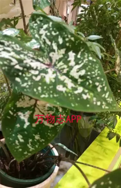 另外有小叶彩叶芋,叶小,卵圆心形,叶脉深绿色,叶面具乳白色不规则斑纹。