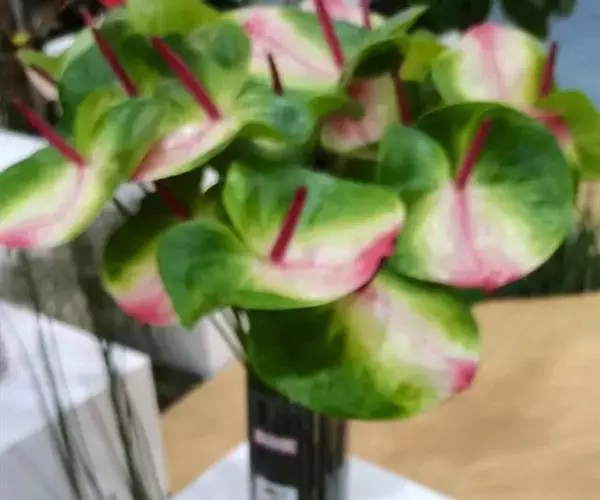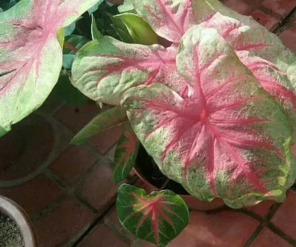 五彩芋叶子十分的翠绿,叶子中间会有红色的叶子向间、耀眼的白斑点呈现在翠绿之上似锦如霞,五彩芋加上白叶绿脉、红叶白脉相互搭配,给人更加艳丽夺目、高贵典雅的感觉。而彩叶芋经常给作为室内盆栽植物,通常都是放置在桌上或者是窗台,显得更为雅致和典雅。特别是放在落地窗那里,更有一番风景,或者是庭园栽植,亦可切花作花材和其他花卉搭配成花束。当人们劳累了一天的时候,回家看到自己家里的五彩芋生长的如此的有生命力,能给你带来欢喜、愉快的感觉。所以,它的花语为喜欢、欢喜、愉快。