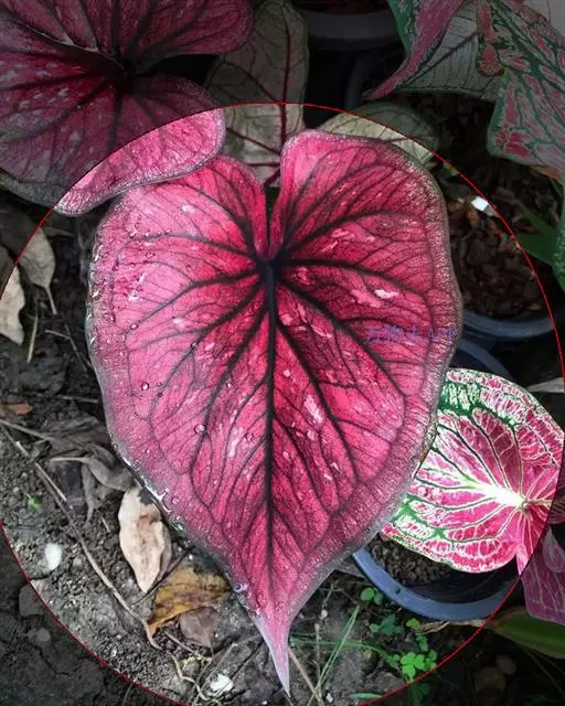五彩芋喜粘质土壤,多以粘质田土五份、腐叶土二份与砂三份混合配制而成。